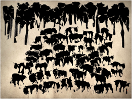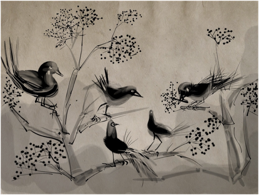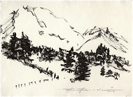 Begegnung ohne Begegnung Tusche/Gold 2000
